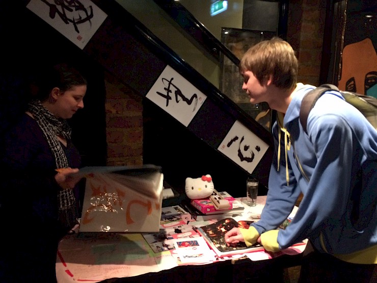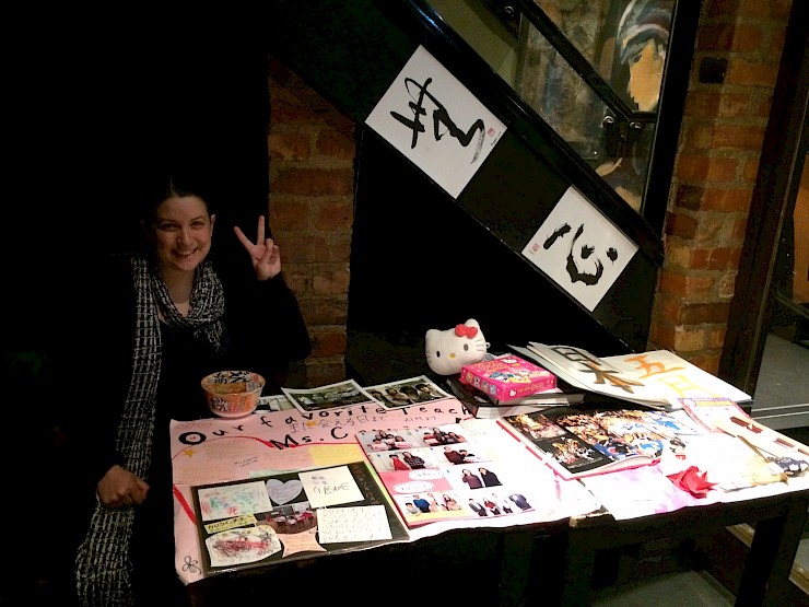 JETAA ran a table exhibiting memorabilia from our time on the JET Programme, books about Japan and origami. I even brought my Shodo file from when I was a JET and shared some of my teacher’s examples with the calligraphers and the guests. I chatted with people from a variety of backgrounds and ages, who all had a deep interest in Japan, the Japanese language and culture, including those who were interested in applying for the JET programme. The calligraphers ran a stall that allowed our vistors to try their hand at calligraphy. I also had a go