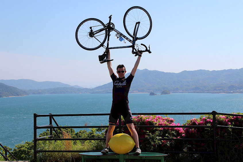 I also did a lot of cycling when I was in Japan. I actually sent my road bike from the UK to Japan and used it an awful lot whilst I was there. Probably the best ride I did was with my friend, who was also English. We did a ride from Moriyama, which is the city where I was in Shiga prefecture, and spent four days riding to Hiroshima, it's about 4-500 kilometers in total, I think. Shiga to Kobe, Kobe to Okayama, Okayama to Onamichi, Onamichi to Hiroshima city. It was a four-day ride, and we saw lots of stuff along the way, and when we got there from Shiga, two of our other friends just showed up, having taken the shinkansen down.
