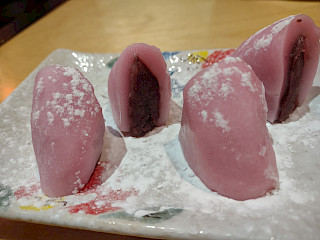 For dessert, the staff offer a variety of Mochi. When it arrived, we found that it was all ice cream-filled or Anko-filled daifuku, which made sense since it was listed next to the matcha ice cream. Anko is another uncommon ingredient in restaurants around here, so it was a delicious blast from the past to eat something decadent again.